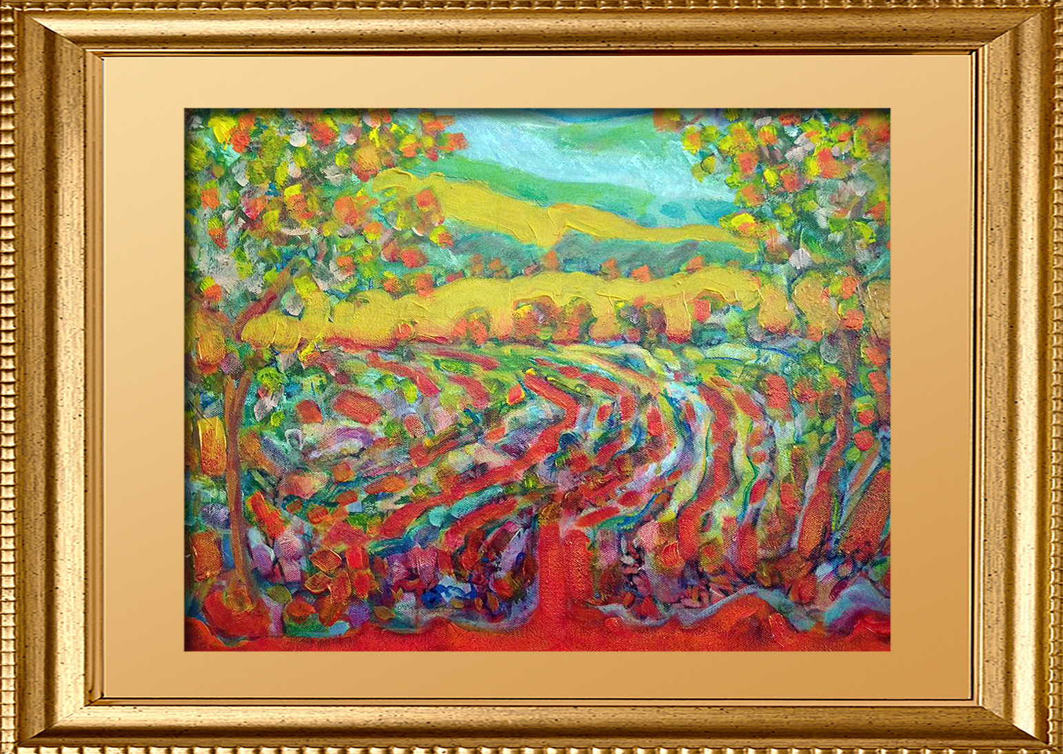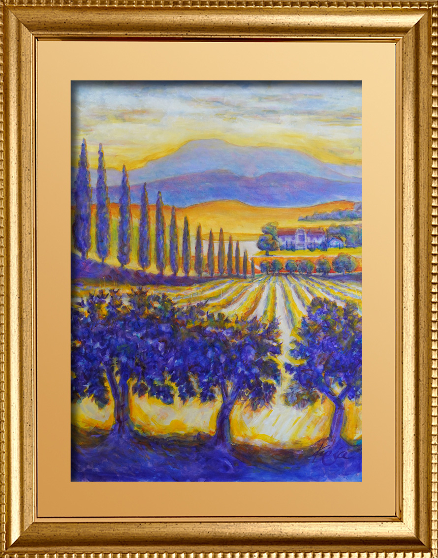 The exquisite “Grapes On The Vine” piece by Master Artist Kip Dodge, is a gorgeous representation of the Tuscany Sun as it dances upon the ripe grapes, ready to be transformed into a fine wine.